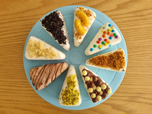- שוקולד לבן ושוקולד חלב לציפוי הגלידות