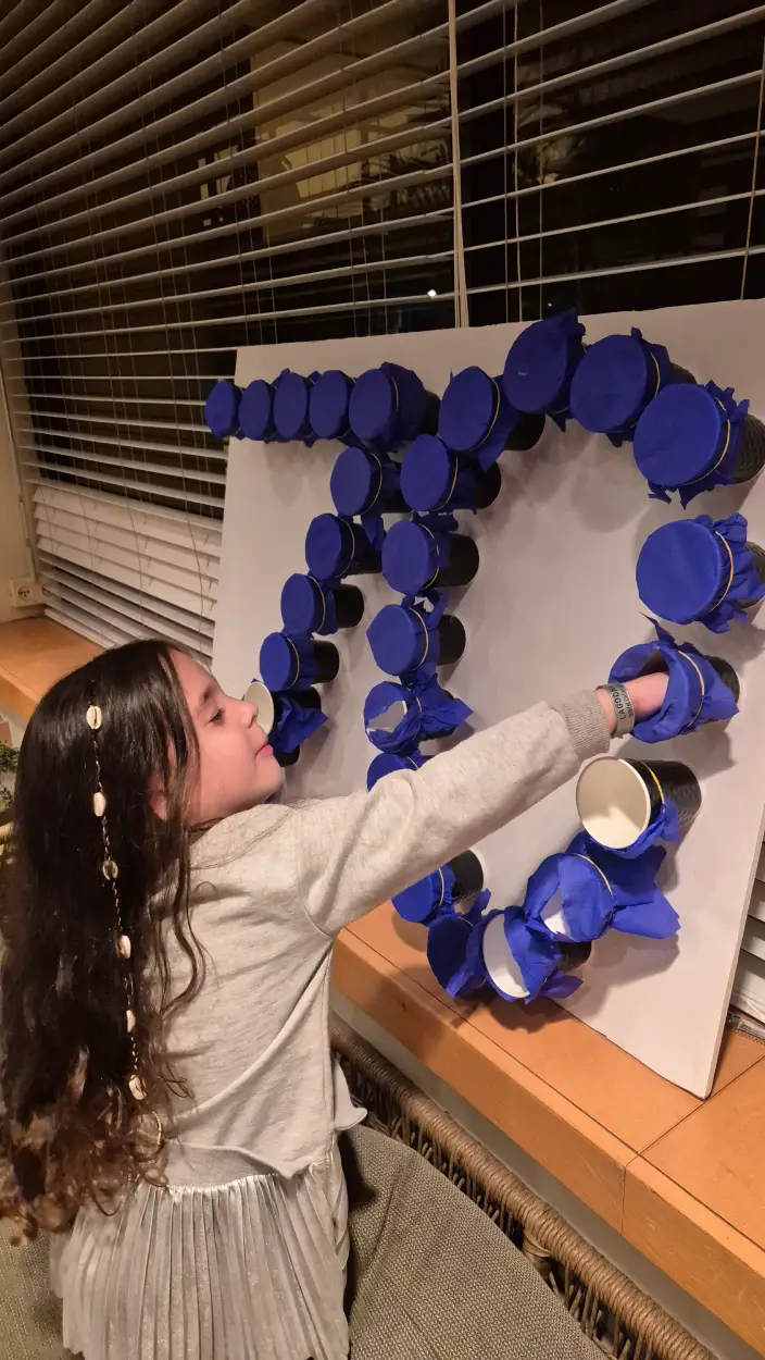 אני והילדים יצרנו את המספר 70 מכוסות, קרפים וגומיות משרדיות. בתוך הכוסות החבאנו הפתעות ומשימות שקשורות לאבא וכמובן שהיו גם פרסים שווים למשתתפים.