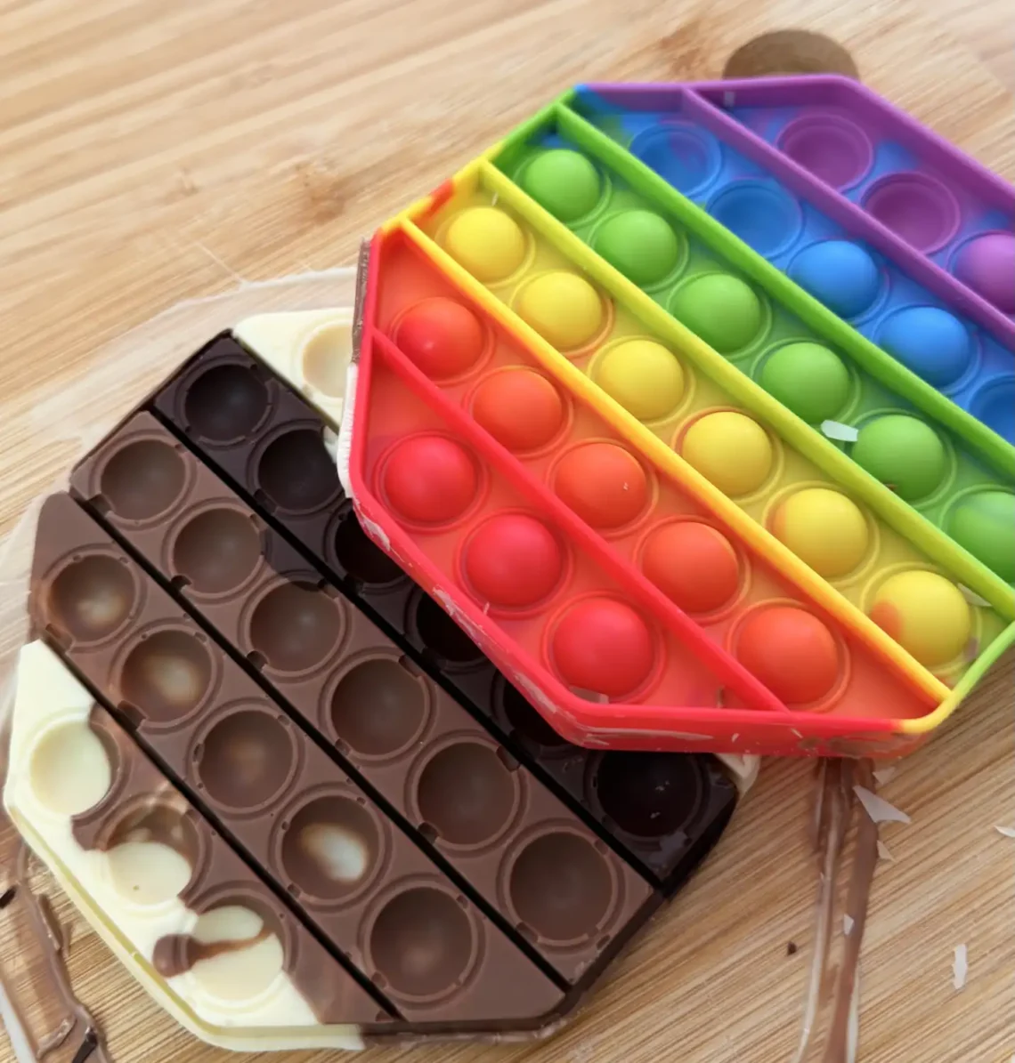 לאחר שמסיימים למלא את הפופיט, מכניסים אותו למקפיא לכ-30 דקות עד שהשוקולד מתקשה. כשהשוקולד קפוא, מוציאים את הפופיט בזהירות ומחלצים את השוקולד מהתבנית. התוצאה- פופיט שלם משוקולד שאפשר לאכול!